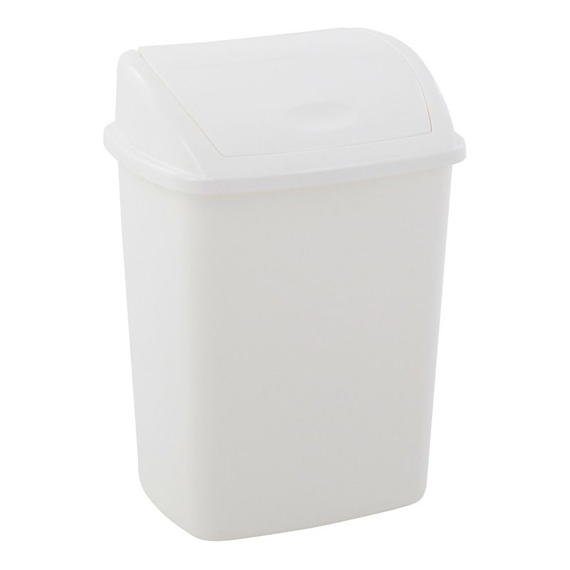 Kunststof afvalbak met swing deksel. Geschikt voor wandbevestiging.