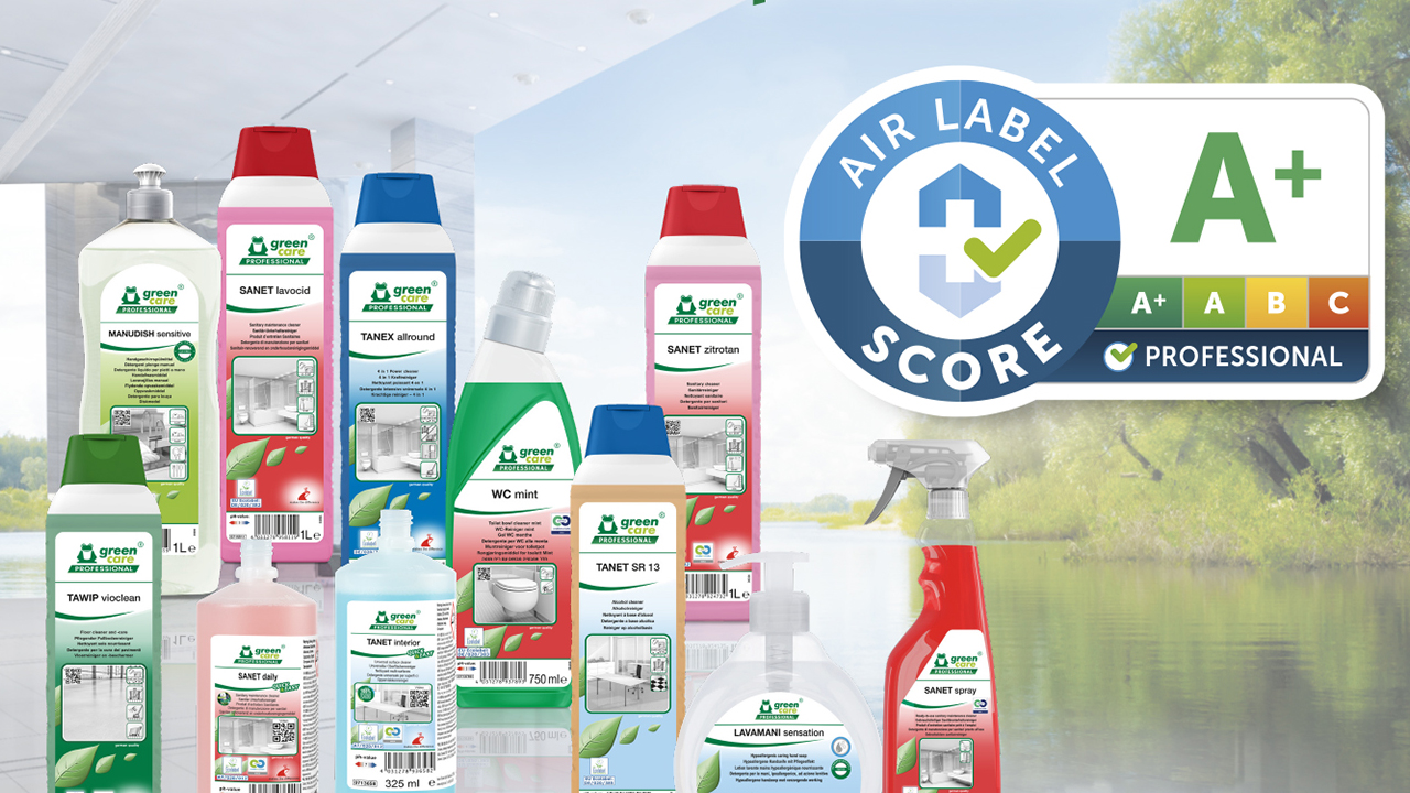 Zij melden dan ook met trots dat ze, als eerste merk in de professionele schoonmaak, maar liefst 11 producten hebben die een ‘Air Label Score’ A+ dragen.