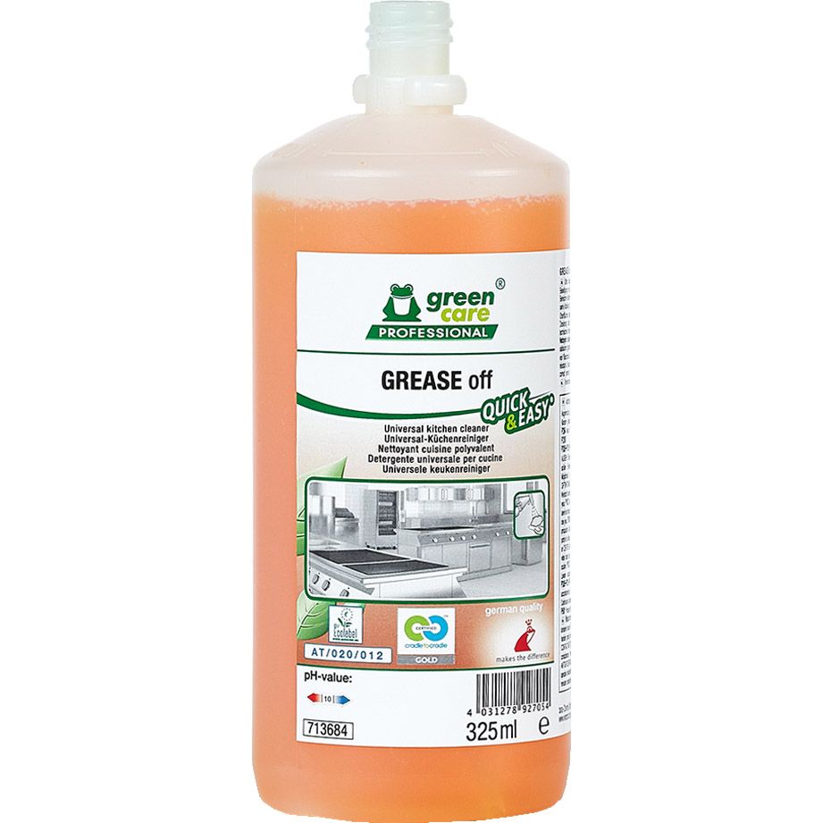 Dankzij de speciale combinatie van oppervlakte-actieve stoffen heeft GREASE off Quick & Easy uitzonderlijke reinigings- en ontvettingsprestaties, die zelfs toelaten hardnekkige vervuilingen te verwijderen in de voedselverwerkende omgeving.