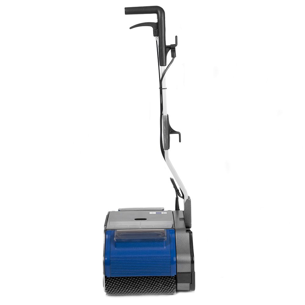 De vloerreiniger Duplex 340 is uitermate geschikt voor tapijtreiniging en onderhoud van veel verschillende types vloeren. Voorbeelden hiervan zijn vloerbedekking, ruwe tegels, sportvloeren, marmer, leisteen en siergrindvloeren. De borsteldruk kan worden ingesteld met de schakelaar aan de zijkant van de machine. Hoe ruwer de vloer, hoe hoger de schakelaar. Laat de hendel lichtjes zakken totdat de borstels de vloer raken om de machine in werking te zetten. Water en reinigingsmiddel wordt gedoseerd vrijgegeven door aan het handvat te trekken. Via de cilindrische borstels wordt het vuil naar de centrale opvangtank getransporteerd. Deze opvangtank is gemakkelijk te legen. De machine kan worden uitgeschakeld door de hendel in de rechte stand te zetten.