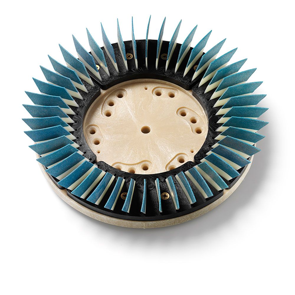 Het Diamabrush by Malish beton- en Terrazzo-vloerpolijstsysteem is afhankelijk van het gebruik van de steeds fijner wordende polymeer inzetstukken. Elk betonpolijstgereedschap bevat flexibele bladen waarmee de diamanten constant in contact blijven met de vloer.