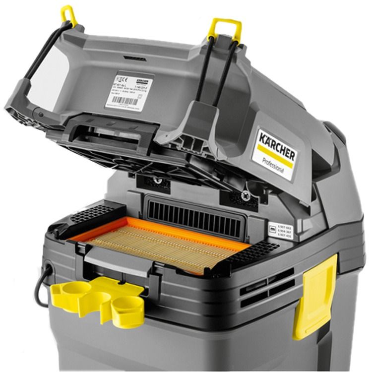 De NT 40/1 Ap L is een krachtige en veelzijdige stof- en waterzuiger, uitgerust met een 40-liter reservoir en halfautomatische filterreiniging. Deze innovatieve technologie zorgt ervoor dat de zuiger zelfs zonder filterzak moeiteloos fijnstof verwijdert. De NT 40/1 Ap L is ideaal voor het verwijderen van grof vuil, vloeistoffen, afzuigen bij machines en het reinigen van voertuiginterieurs.