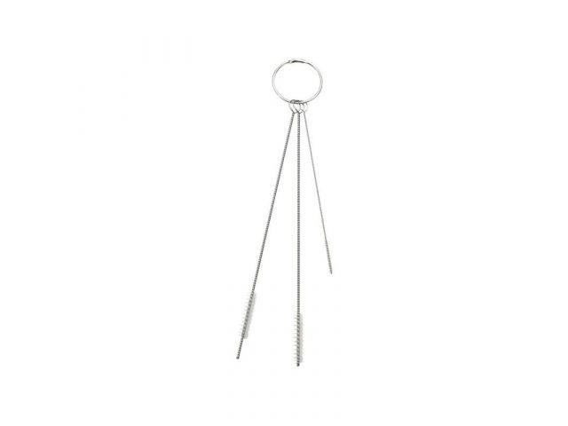 Zeer smalle pijpborstelset van 3 pijpborstels aan een ring: Ø2, Ø5 en Ø6 mm. Voor het inwendig reinigen van zeer nauwe locaties in kleine of gevoelige machines, zoals koffiemachines, sapmachines en andere dispensers. Ook toegepast bij tabletteermachines in de farmaceutische industrie.