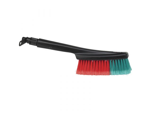 De Vikan 525452 handborstel met watertoevoer is voorzien van een Gardena aansluiting. O.a. geschikt voor personenauto's en kleine busjes. De handborstel heeft zachte splitvezels. De borstel kan dankzij de Gardena koppeling worden aangesloten op de slangen van Gardena. De zwarte Vikan handborstel heeft een lengte van 36cm.