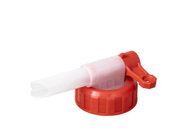De schuine gietbuis past ook makkelijk in smalle flessenhalzen.