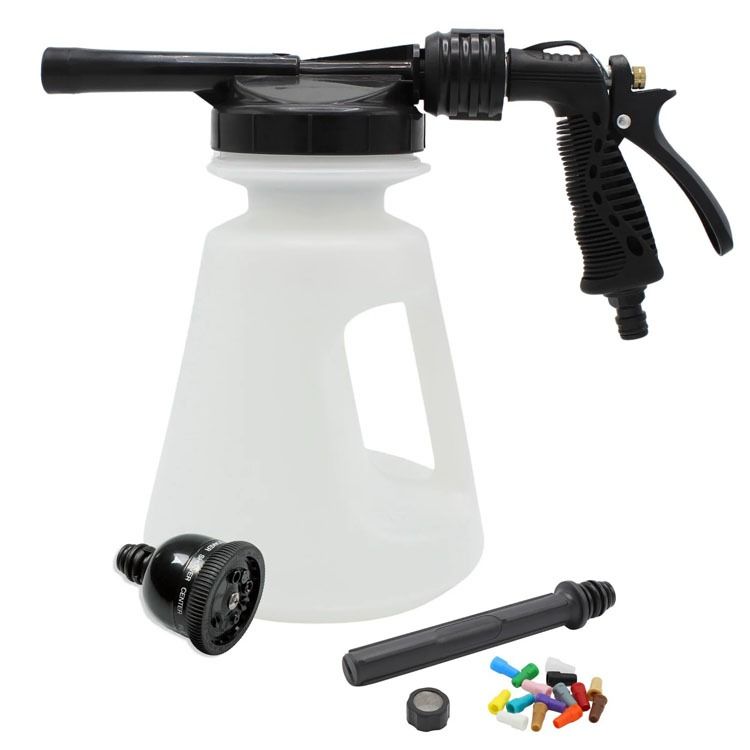 De foamer is eenvoudig te bevestigen op de waterslang, en verbruikt geen elektriciteit. Het zorgt voor een betere reiniging en een langere inwerking met dik en rijk schuim, ideaal om reinigings– en ontsmettingsmiddelen mee aan te brengen. Je stelt zelf de verdunningshoeveelheid in met de meegeleverde set meettips.