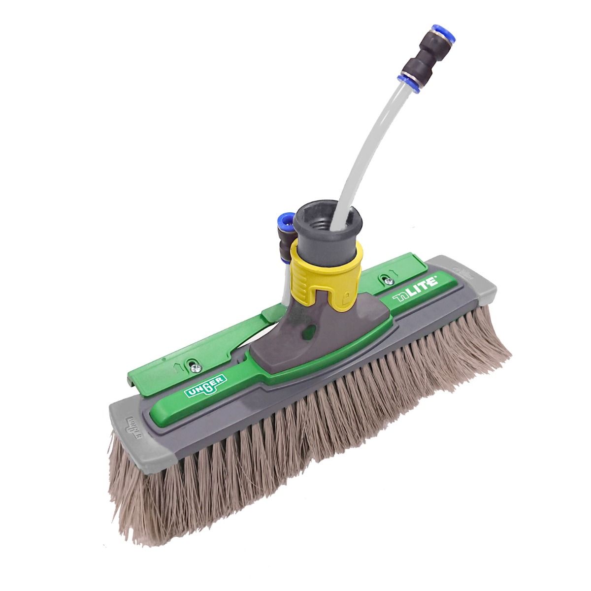 De Unger nLite Power borstel compleet 28 cm heeft grijze ongespleten borstelharen voor maximale reinigingspresentatie en perfecte glij eigenschappen.