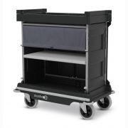 De materiaalwagens zijn zelfs te personaliseren met een foto of (bedrijfs)logo. Zo laat je direct een professionele indruk achter.