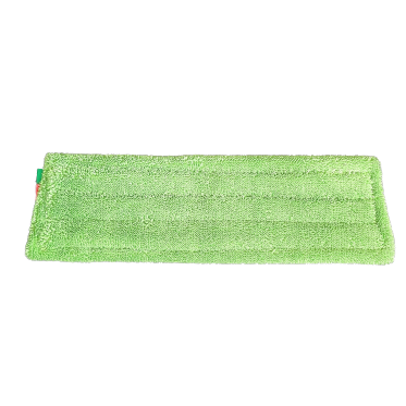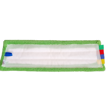 De mop bestaat uit een microvezel en kleurcodering. Met circa 150 mililiter water kun je 40 á 50 vierkante meter reinigen.