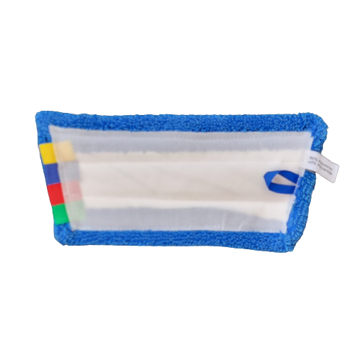 De mop bestaat uit een microvezel en kleurcodering. Met circa 150 mililiter water kun je 40 á 50 vierkante meter reinigen.