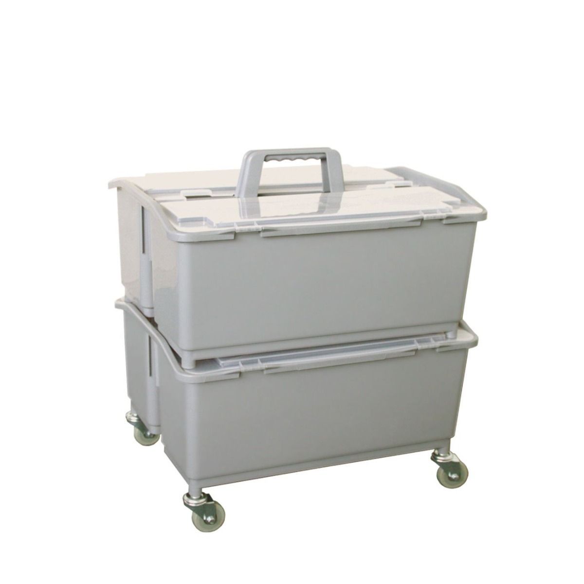 Ook geschikt als Multi-purpose cleaning caddy: met in totaal 4 compartimenten kunnen desgewenst meer verschillende schoonmaak materialen worden meegenomen. Bijvoorbeeld: doeken, sprayers, sponzen of pads. Zonder wielen kan de Dubbele MopBox ook op een trolley worden meegenomen.