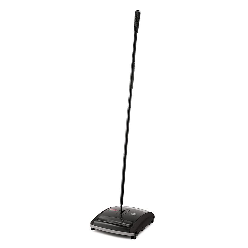 Veger van duurzaam gegalvaniseerd staal en robuust ABS-plastic met twee non-marking rubberen borstelrollen, die doeltreffend stof en vuil opvegen van uiteenlopende vloertypes. Perfect voor toepassing in de voedselverwerkende sector. Breed veegpad van 19 cm en laag profiel om gemakkelijk rond en onder meubelen te komen. Voorzien van dubbel vuilreservoir (0,6 liter) met deuren die opengaan met één aanraking. Door de getinte vensters ziet u duidelijk wanneer de veger geleegd moet worden. De zachte rubberen wielen passen zich aan het vloeroppervlak aan. Met hoekborstels en beschermende voor- en achterbumper. Steellengte 101,6 cm. Ideaal daar waar een stofzuiger geen optie en/of niet voor handen is.