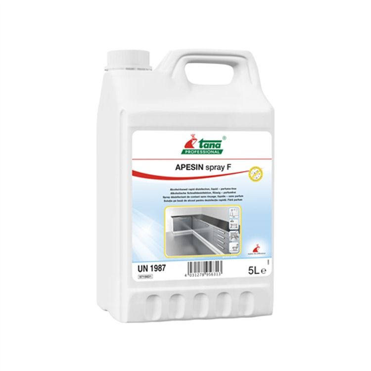 APESIN Spray F is een gebruiksklaar, vloeibaar desinfectiemiddel op alcoholbasis voor de snelle en effectieve desinfectie van harde, niet-poreuze kleine oppervlakken. Parfumvrij en residuvrij drogend – ideaal voor omgevingen waar geur ongewenst is, zoals zorginstellingen en de voedingsmiddelenindustrie.