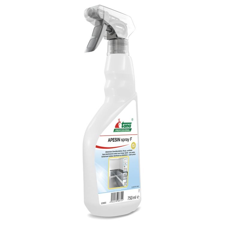 APESIN Spray F is een gebruiksklaar, vloeibaar desinfectiemiddel op alcoholbasis voor de snelle en effectieve desinfectie van harde, niet-poreuze kleine oppervlakken. Parfumvrij en residuvrij drogend – ideaal voor omgevingen waar geur ongewenst is, zoals zorginstellingen en de voedingsmiddelenindustrie.