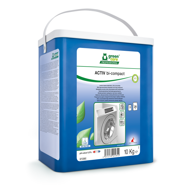 • ACTIV bicompact zorgt voor hoge wasprestaties zelfs vanaf 20°C, tot 60% minder elektriciteitsverbruik en tijdswinst dankzij kortere wasbeurten. Het houdt rekening met de biologische cycli, en is ontwikkeld met het oog op de gezondheid van mensen en de veiligheid van schoonmaakpersoneel.