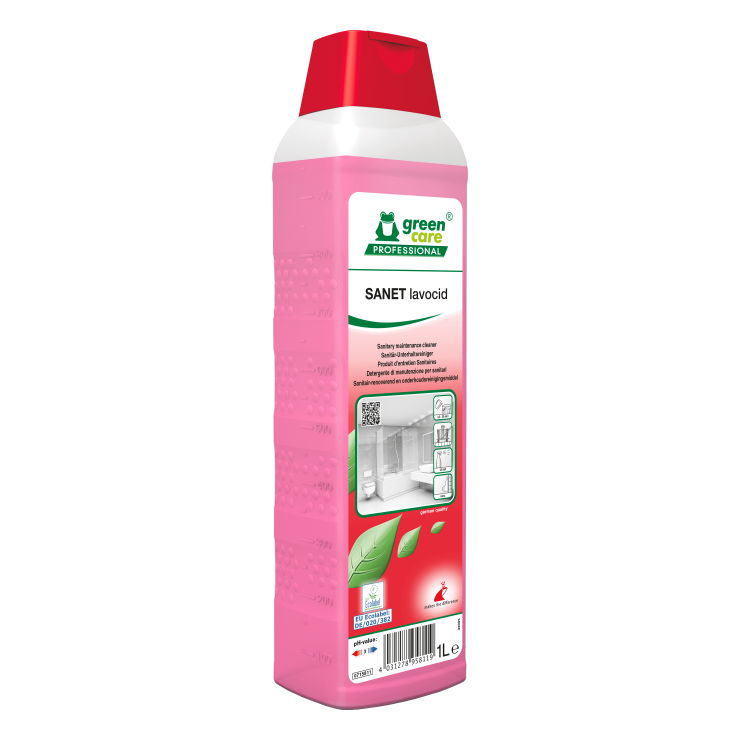 - SANET lavocid maakt een eenvoudige en snelle toepassing mogelijk dankzij het vierkant design van de 1L fles.
