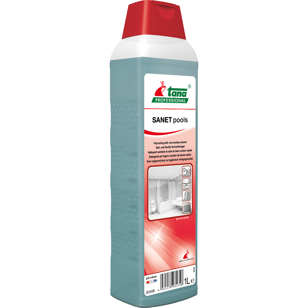 - SANET pools is een sterke sanitairreiniger die gemakkelijk kalkaanslag, urinesteen en zeepaanslag verwijdert.