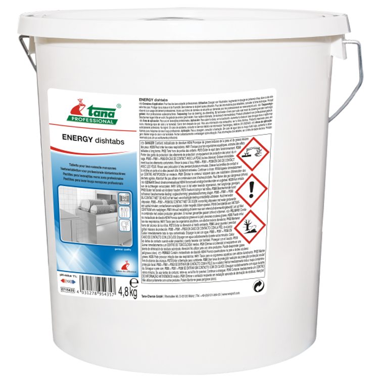 Dankzij de emmer van 4.8 kg kan ENERGY dishtabs worden ingezet voor 870 wasbeurten.