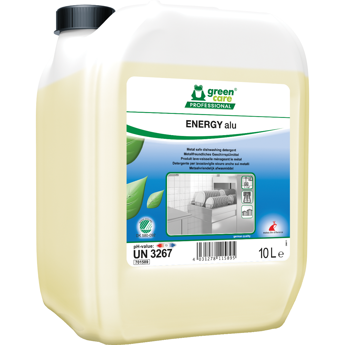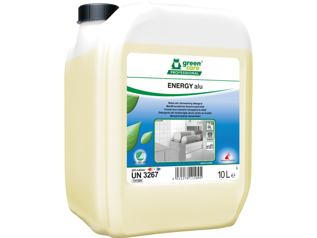 • ENERGY alu is een geconcentreerd vloeibaar vaatwasmiddel voor professionele vaatwassers en is eveneens geschikt als inweekmiddel. Het heeft uitstekende reinigingsprestaties, in zacht tot middelhard water.