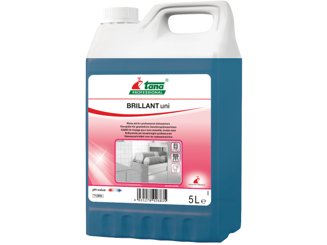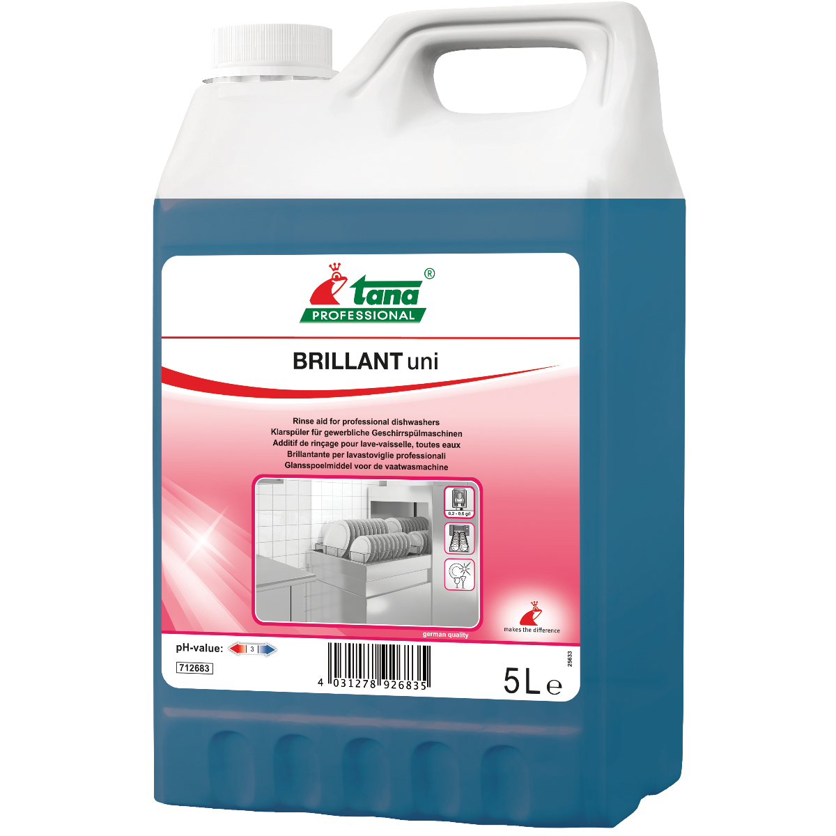 - BRILLANT uni is een kosten- en tijdbesparend spoelmiddel, dat de droogtijd verkort en resten als gevolg van de alcohol die het bevat, snel oplost.