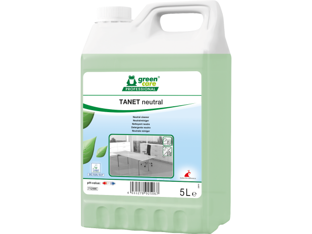 • TANET neutral is een neutrale onderhoudsreiniger met uitstekende prestaties zelfs bij vervuiling door olie en vet. Het houdt rekening met de biologische cycli, en draagt zorg voor de gezondheid en de veiligheid van het schoonmaakpersoneel.