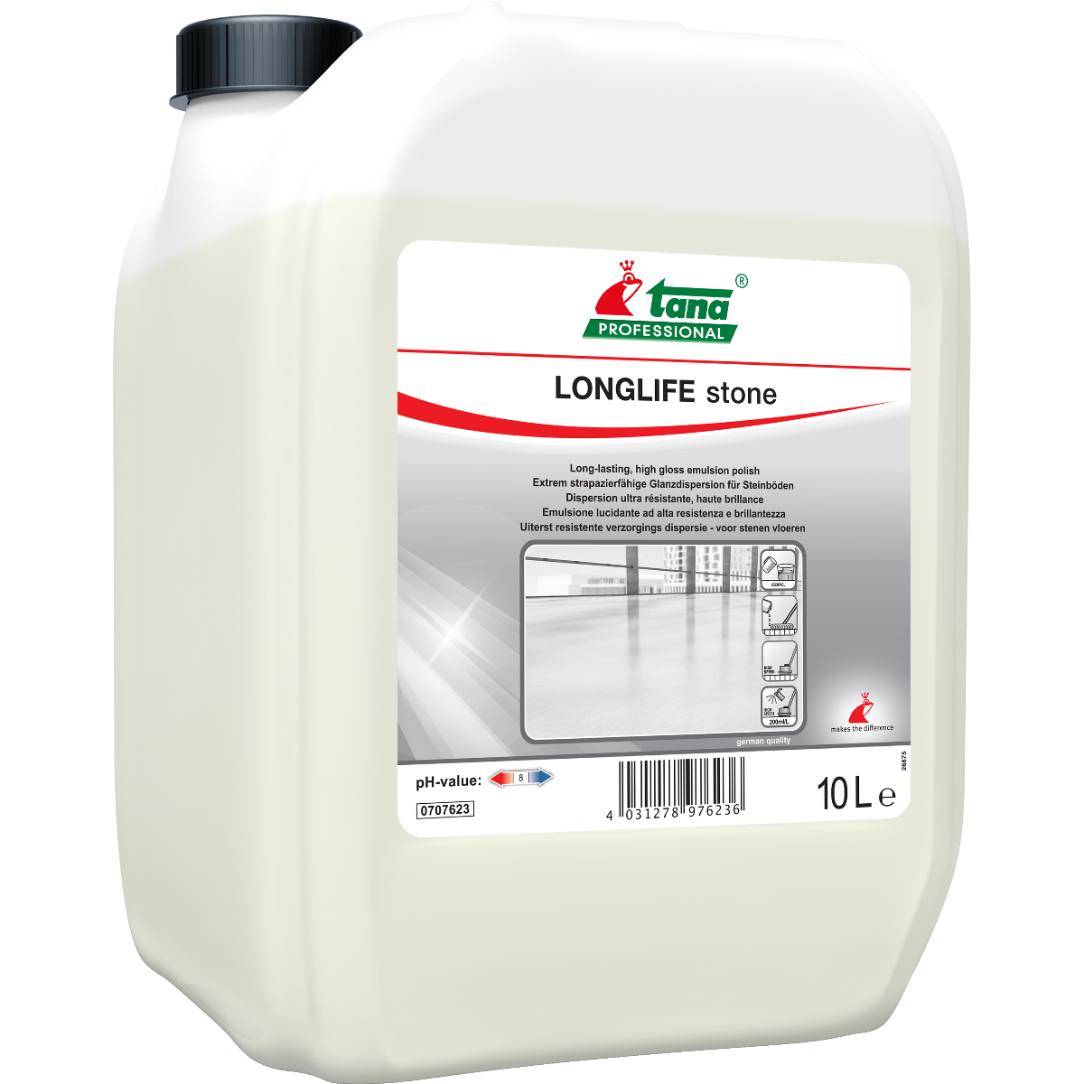 - De beschermfilm van LONGLIFE stone met hoge vulkracht geeft reeds na het eerste gebruik een glanzend, gelijkmatig uitzicht van de vloer.
