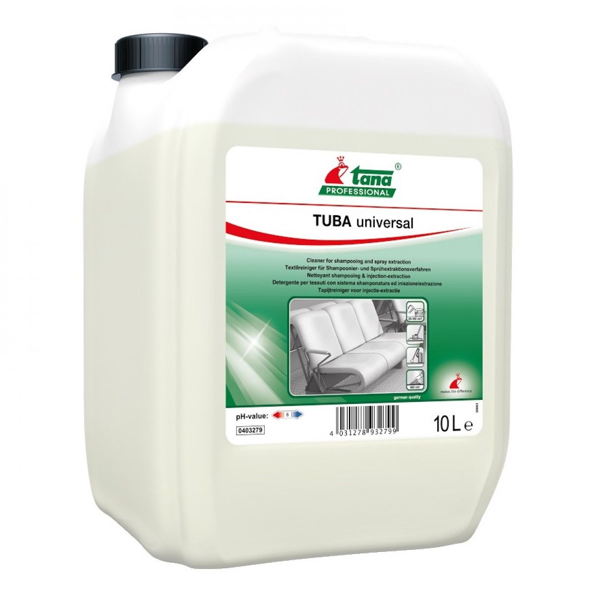 - TUBA universal is geschikt voor shamponeer- en sproei-extractie methodes.