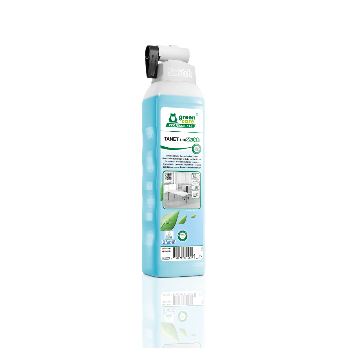 TANET uniSwitch is een ultra geconcentreerde vloer-en oppervlakkenreiniger. De goede bevochtigingseigenschappen zorgen voor een gemakkelijke en grondige verwijdering van vuil en vet van poreuze stenen vloeren en zelfs van hydrofobe oppervlakken zoals PUR, zonder strepen of vegen achter te laten.