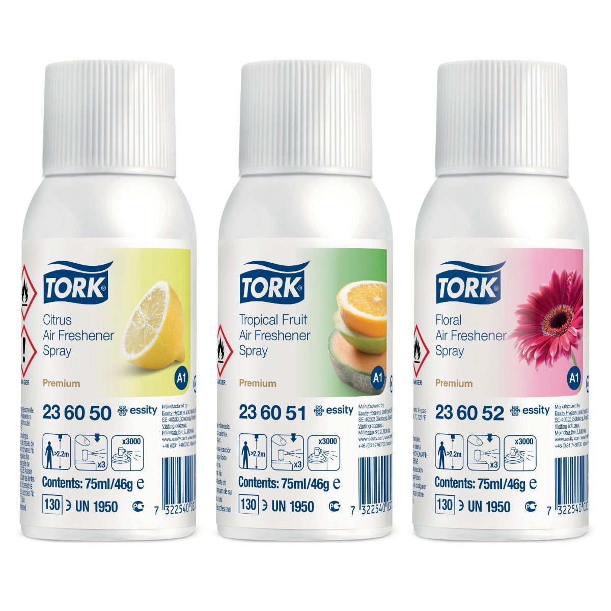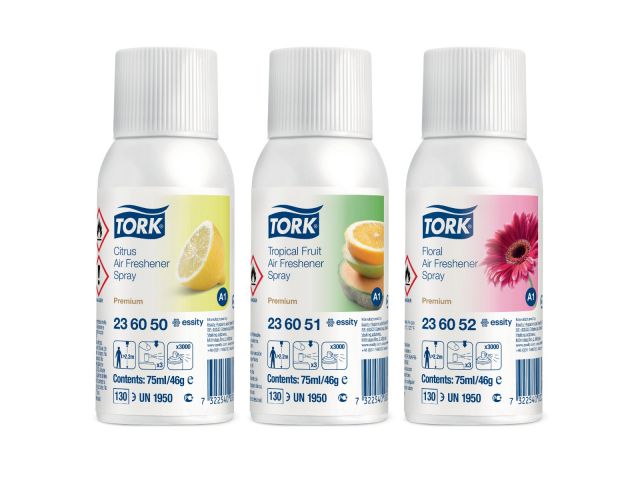 Houd onaangename geurtjes in de sanitaire ruimte effectief en efficiënt in toom met het luchtverfrisserspraypakket met verschillende geuren. De spray bevat geconcentreerde geuroliën en gepatenteerde middelen die geur neutraliseren. Zo rekent u af met onaangename geuren en kunt u een langdurig frisse lucht bieden. De sprays zijn geschikt voor de Tork Luchtverfrisser Spray Dispenser.
