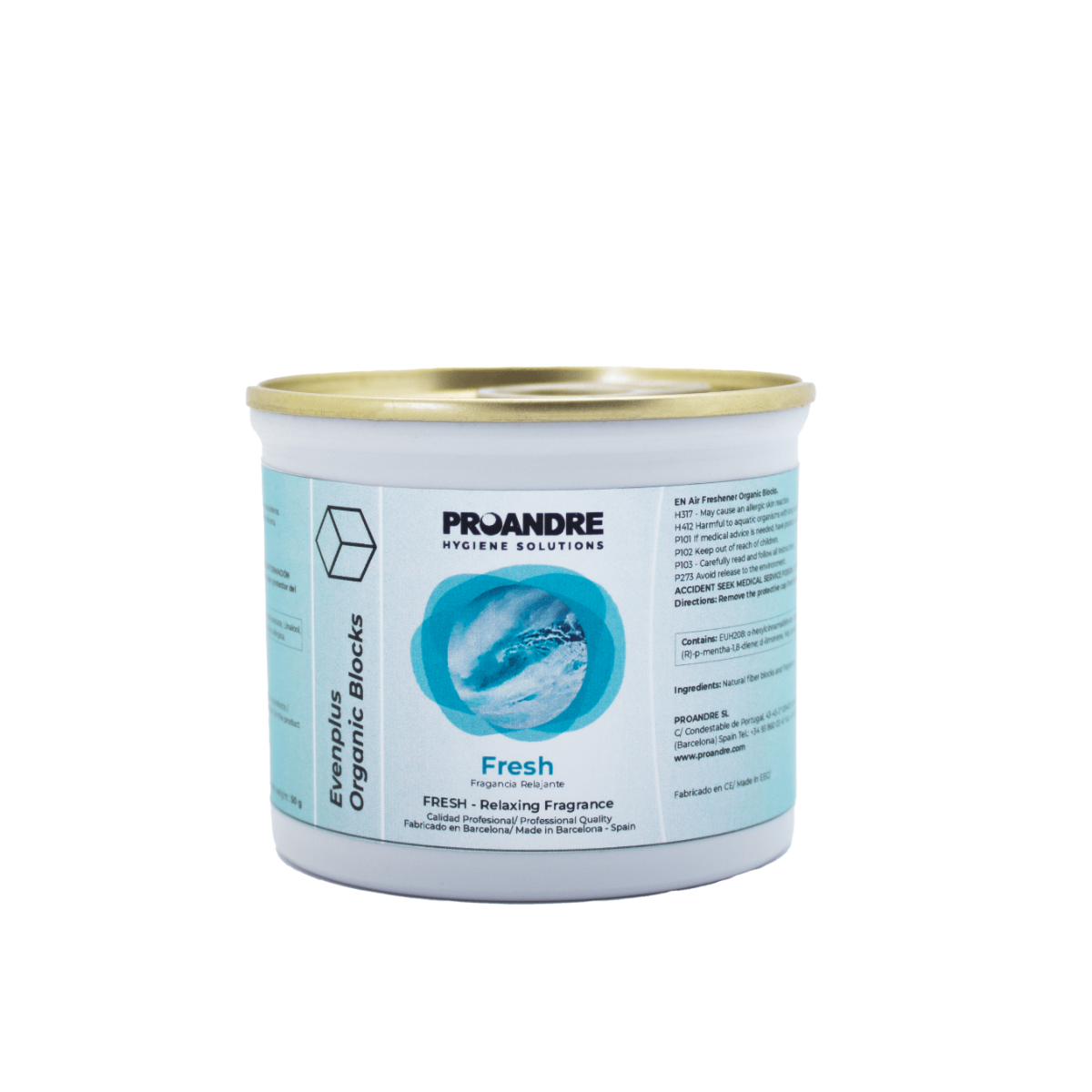 Blikje met 3 blokjes luchtverfrisser gemaakt met kokosvezels gedrenkt in geur Fresh om de duur te verlengen. Ze zijn biologisch en biologisch afbreekbaar. Dekt oppervlaktes tot 50 m2.