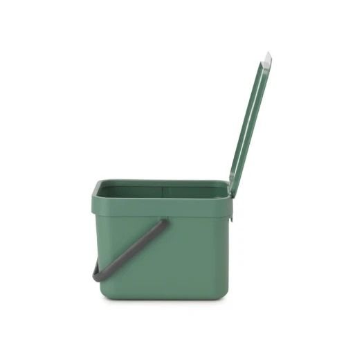 Doordat de deksel over de rand heenvalt, wordt de afvalzak weggewerkt.