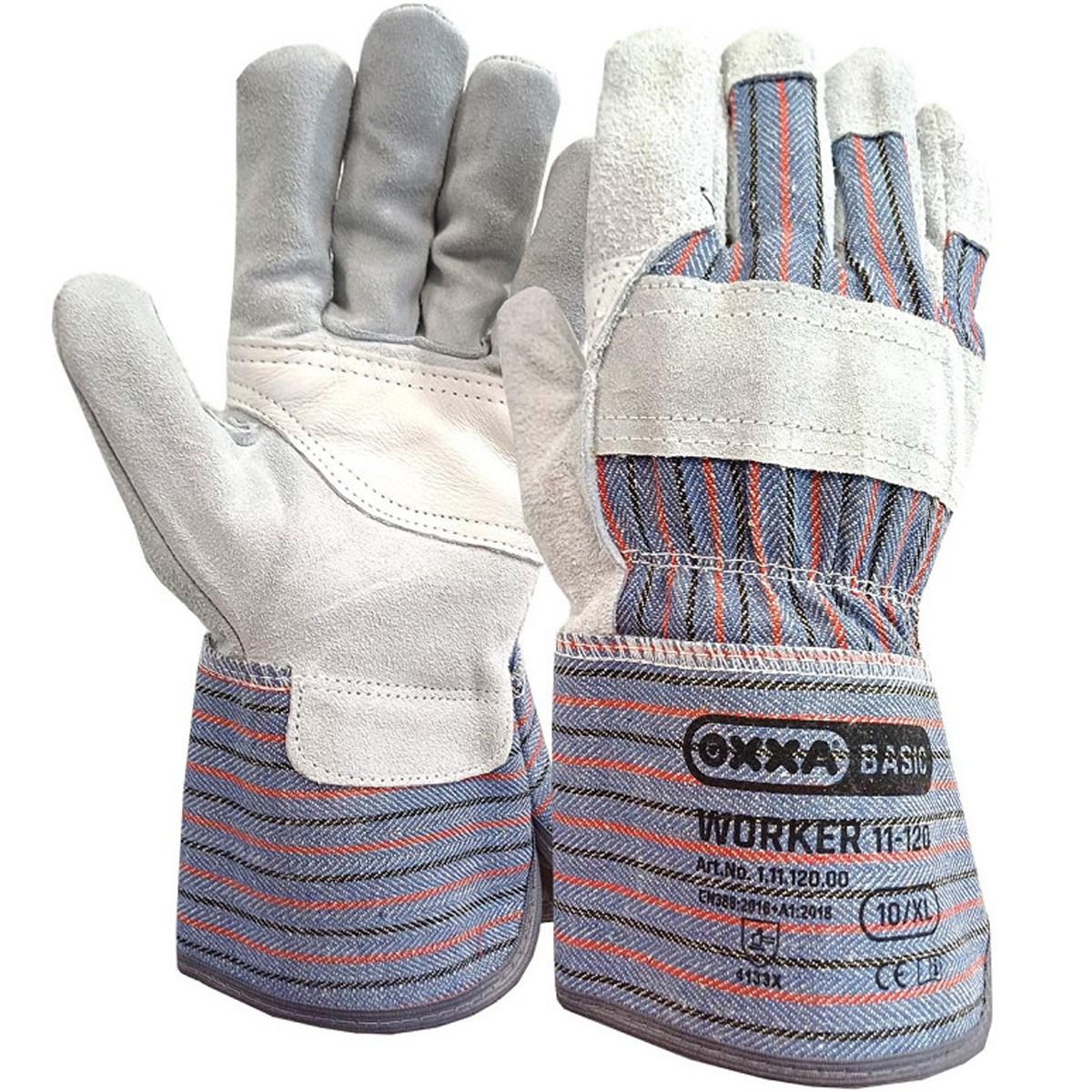 Werkhandschoen, ookwel Amerikaantje genoemd, gemaakt van rundersplitleder. De palmen worden versterkt met rundnerf lederen palmversterking. De binnenzijde is gevoerd met een witte polyester/katoenen voering.