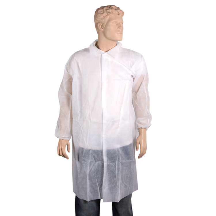 De vederlichte non-woven ‘schort en jas’ draagt prettig, ook over je gewone kleding heen. Hij is voorzien van een hoogsluitende kraag en drukknopen waarmee je de jas eenvoudig dichtmaakt. Dankzij de polselastieken sluiten de mouwen goed rond de pols, waardoor daar geen vuil of stof in of uit de jas kan komen.
